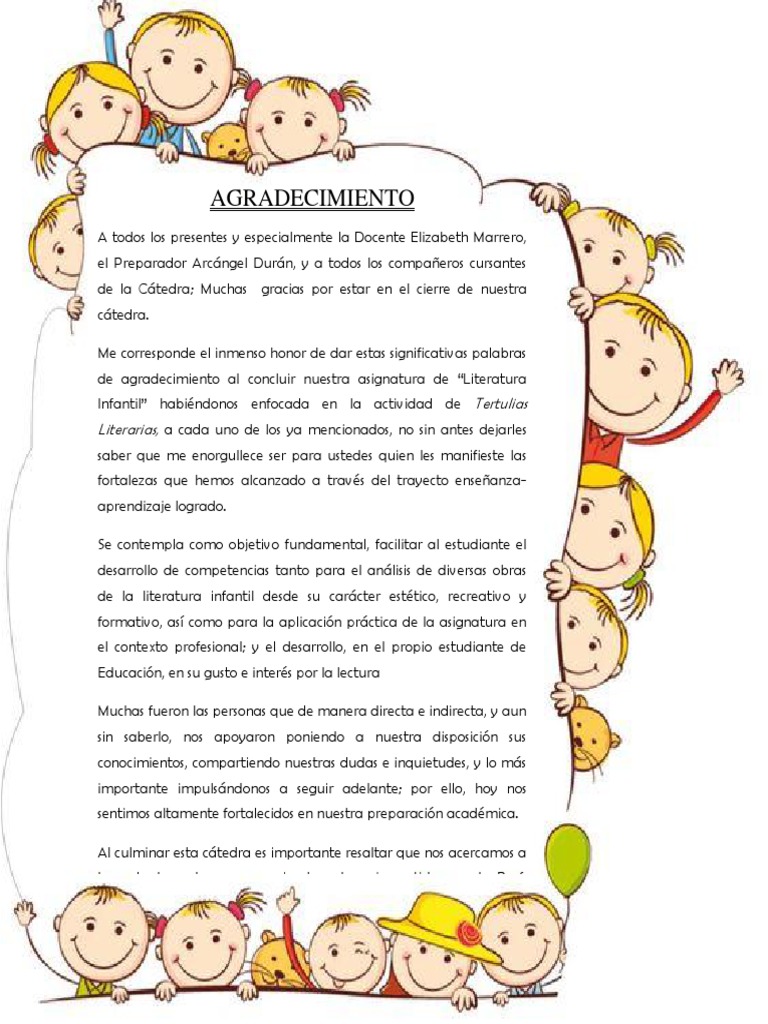 Palabras De Agradecimiento Pdf Maestros Aprendizaje