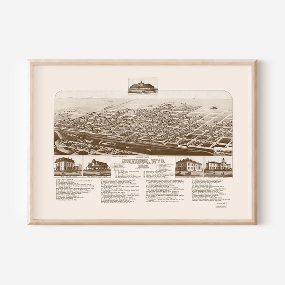Vintage Map Of Cheyenne Vintage Birds Eye View Map Wall Art Etsy Australia